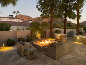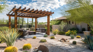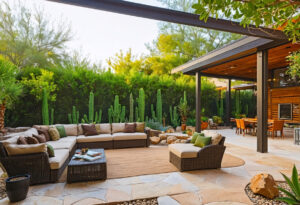 Hardscaping is a game-changer in desert landscaping. It reduces the need for irrigation and provides visual interest and functionality to your patio setup.